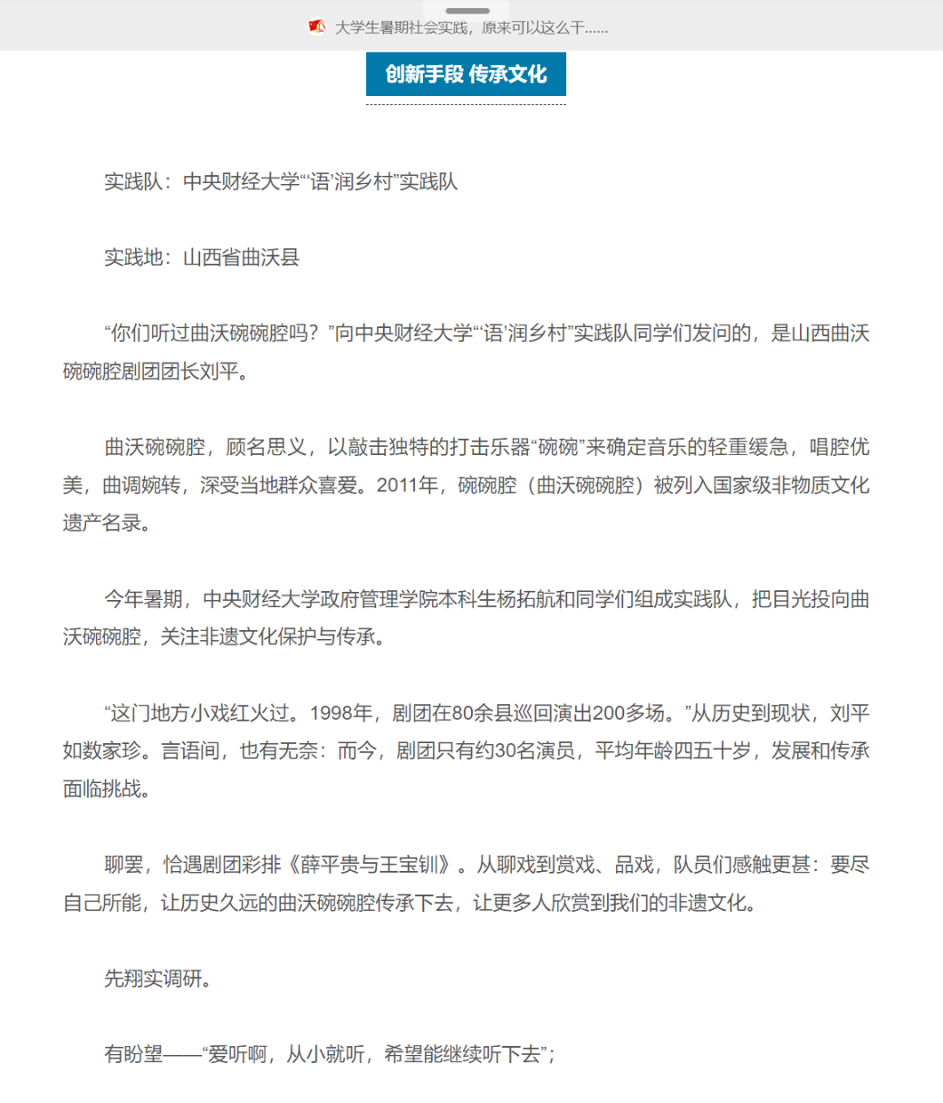 有鼓励——“大学生们心思活,给想想办法,保护咱曲沃碗碗腔”……