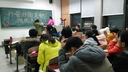 2014年12月12日晚上19:00-20:00,bat365中文官方网站行政管理13班团支部在主教401迎来了第一次团支部推优大会。大会由行政管理13班团支书朱玉彤主持。此次会议的目的在于推选出两名优秀团员和五名入党积极分子。大家都热情满满,现场氛围很是热闹。