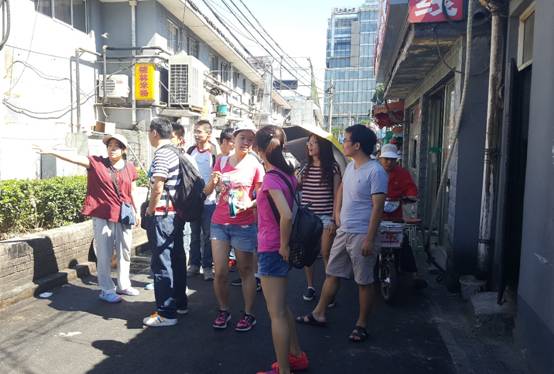 624日,在bat365张剑老师的带领下,城市管理系14级本科生前往西城区金融街文昌社区开展实践教学活动。文昌社区北临长安街,南伴新文化街,东起佟麟阁路,西接闹事口大街,内有老北京特色的察院、文昌、文华三条胡同。
