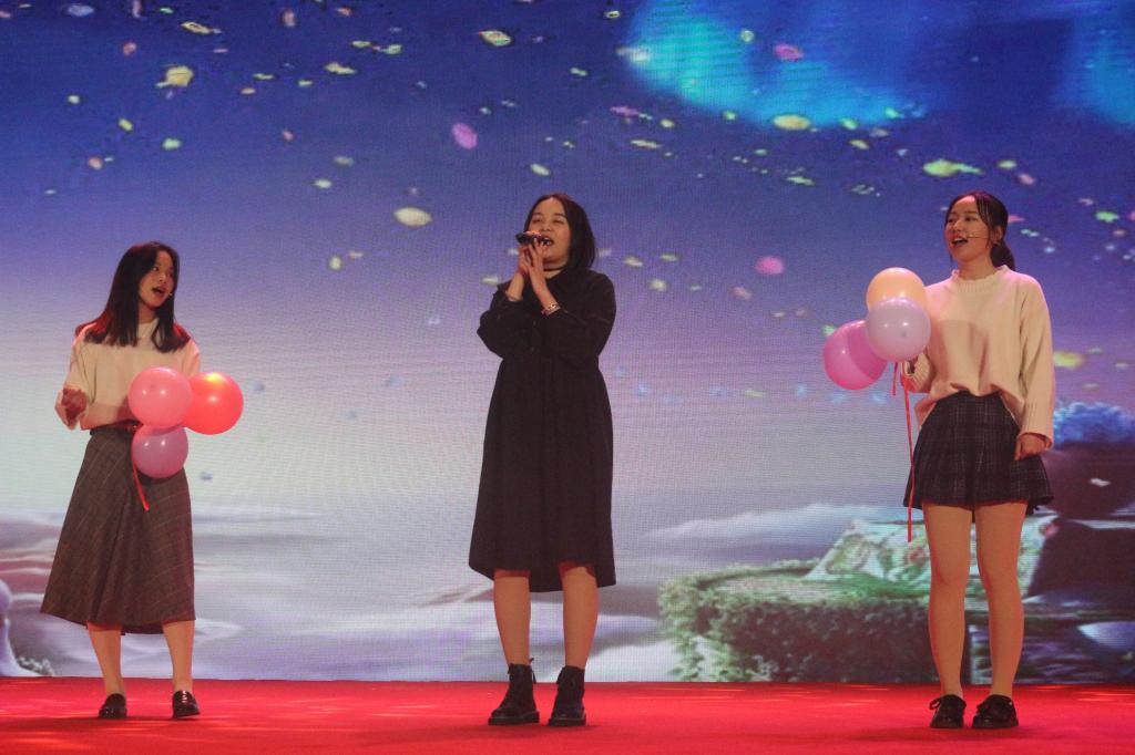 接下来是由曹静、李春静、刘心怡等同学带来的歌曲联唱《跨越时代的经典》。回味经典,余音永存。经典不止是留存在上一辈人脑海里的回忆,更是能唤醒几代人共鸣的集体记忆。一首我只在乎你,带我们回味过去的脉脉情话,绵绵情意,回想起上个世纪人们积极的生活态度。热带雨林,告白气球,平凡之路,爱.... 这些经典歌曲是一代人的回忆,是他们青春的气息,让我们跟着音乐的脚步,重温经典,共忆青春。