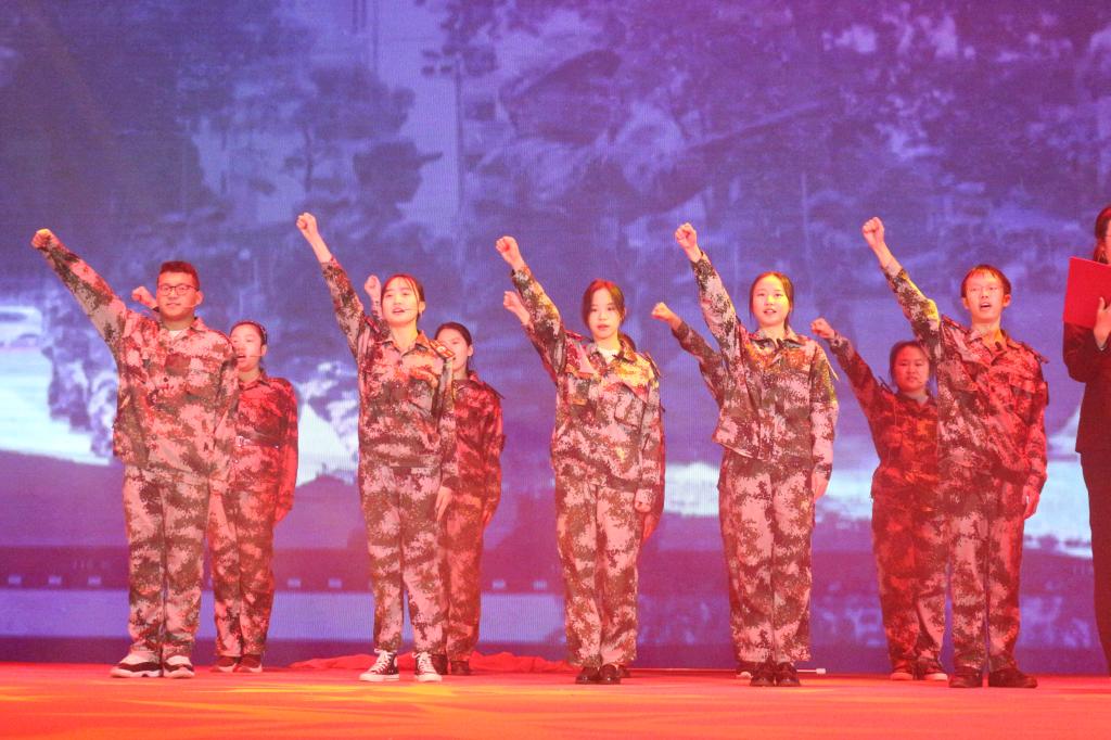 紧接着是公共管理类19-4班带来的《龙马乾坤军训忆》。一段刻骨铭心的回忆,一段不可或缺的青春回忆,体味过军训的酸甜苦辣,会将这段生活久久珍藏于脑海。看公共管理类19-4班的同学们军姿挺拔,屹立如松;听他们口号响亮,喊声震天;更有英姿飒爽的军体拳、棍术方阵,彰显着校园精英的实力。军训十五天锻炼了我们的意志,提高了我们的能力。带着军训的回忆,19-4班的同学们必能在大学生活中保持坚定的意念、勇往直前,不忘初心牢记使命。