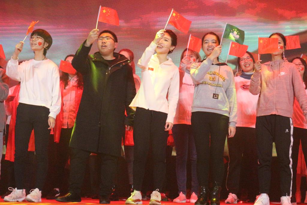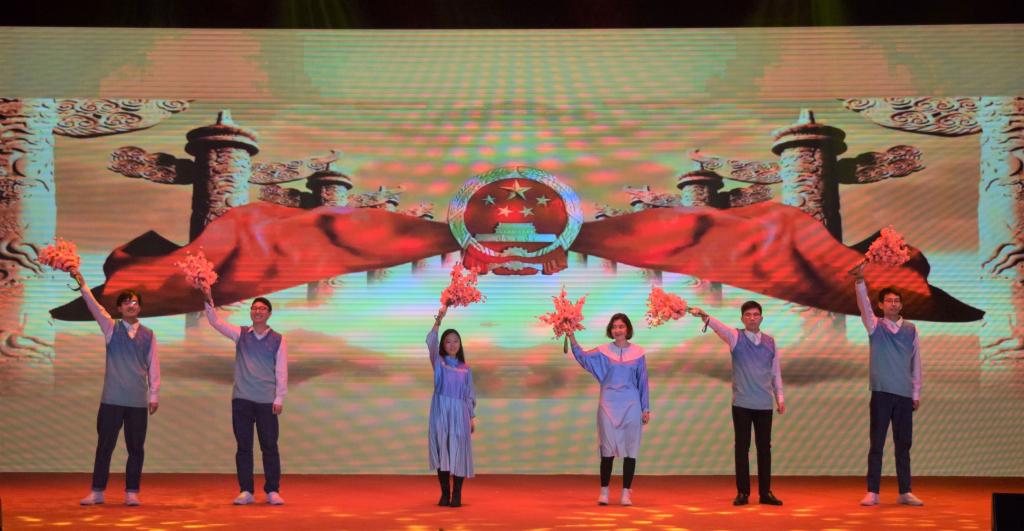 紧张刺激的抽奖环节后后,由公共事业管理18班、城市管理18班联袂带来的节目精彩上演。同样展现中华人民共和国七十年发展史,公共事业管理18班、城市管理18班根据新中国成立70周年的时间线选取了开国大典、一五计划和三大改造、改革开放、香港澳门回归、北京奥运会这几个典型的历史事件来表现祖国的发展历史,表达了同学们对新中国70华诞送上的热切祝福。