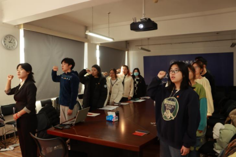 仪式第六项,团委学生副书记薛涵月带领全体团员进行入团宣誓。