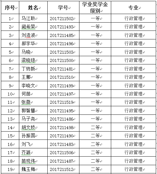 三、bat365中文官方网站2017级公共管理专业硕士研究生学业奖学金获奖名单