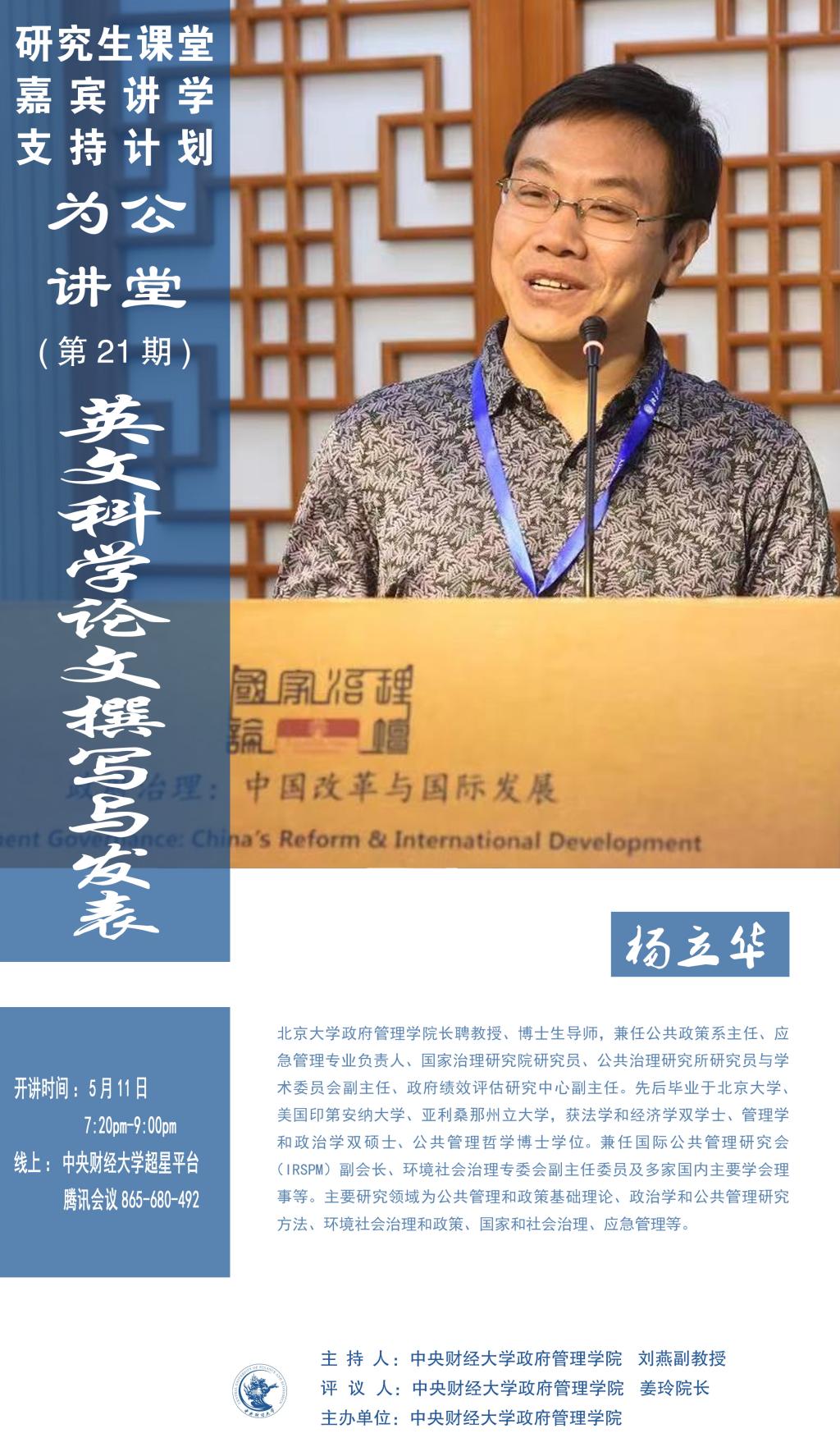 嘉宾简介:杨立华,北京大学bat365中文官方网站长聘教授、博士生导师,兼任公共政策系主任、应急管理专业负责人、国家治理研究院研究员、公共治理研究所研究员与学术委员会副主任、政府绩效评估研究中心副主任。先后毕业于北京大学、美国印第安纳大学、亚利桑那州立大学,获法学和经济学双学士、管理学和政治学双硕士、公共管理哲学博士学位。兼任国际公共管理研究会(IRSPM)副会长、环境社会治理专委会副主任委员及多家国内主要学会理事等。主要研究领域为公共管理和政策基础理论、政治学和公共管理研究方法、环境社会治理和政策、国家和社会治理、应急管理等。