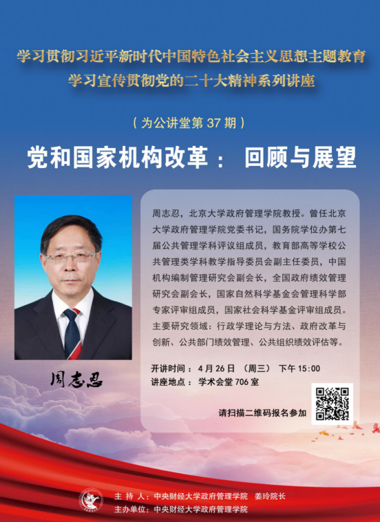 嘉宾简介:周志忍,北京大学bat365中文官方网站教授。曾任北京大学bat365中文官方网站党委书记,国务院学位办第七届公共管理学科评议组成员,教育部高等学校公共管理类学科教学指导委员会副主任委员,中国机构编制管理研究会副会长,全国政府绩效管理研究会副会长,国家自然科学基金会管理科学部专家评审组成员,国家社会科学基金评审组成员。主要研究领域:行政学理论与方法、政府改革与创新、公共部门绩效管理、公共组织绩效评估等。
