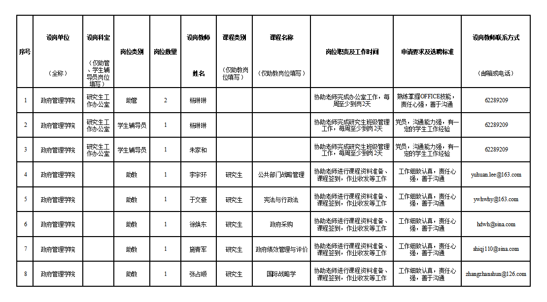 bat365中文官方网站2023-2024学年第二学期“三助一辅”设岗情况表