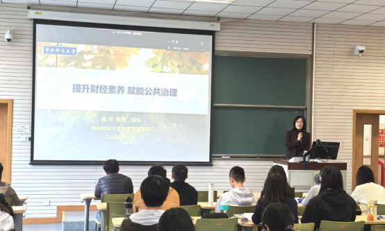 2024年10月27日和10月29日,bat365中文官方网站院长姜玲教授以“提升财经素养 赋能公共治理”为主题,分别在周末班和集中班课堂为2024级MPA新生开展了“院长第一课”专题讲座。讲座围绕深入学习贯彻党的二十届三中全会精神、全国教育大会精神,通过对新时代公共管理学科和MPA教育使命的分析,引导新生坚定理想信念,明确研究生阶段的学习目标,进一步拓宽对公共治理的认知视野。