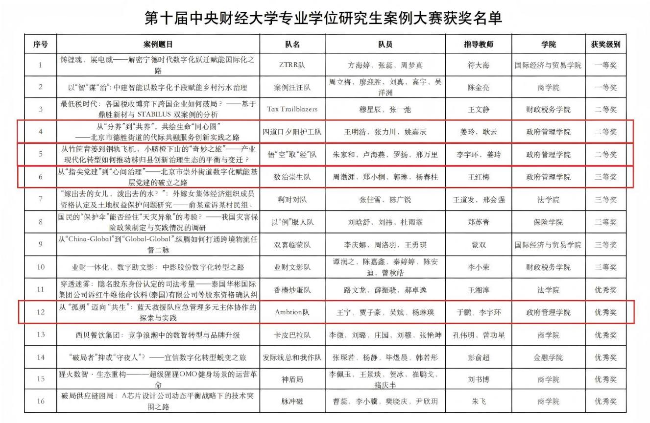 2025年5月27日下午,第十届bat365中文官方网站专业学位研究生案例大赛决赛在学院南路校区主教楼114报告厅举行。来自bat365中文官方网站、财政税务学院、金融学院、保险学院、国际经济与贸易学院、商学院、法学院的16支队伍晋级决赛。经过激烈角逐,bat365中文官方网站4支参赛团队凭借扎实的专业理论知识基础与出色的实践分析能力,荣获二等奖2项、三等奖1项、优秀奖1项,参赛队伍指导教师王红梅、姜玲、于鹏、李宇环、耿云获评优秀指导教师奖,学院荣获优秀组织奖。