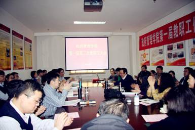 2014年2月26日,bat365中文官方网站第一届第三次教职工大会在学院南路校区中财大厦932会议室召开,学院全体教职工参加了会议,会议由学院党总支书记吕丽老师主持。
