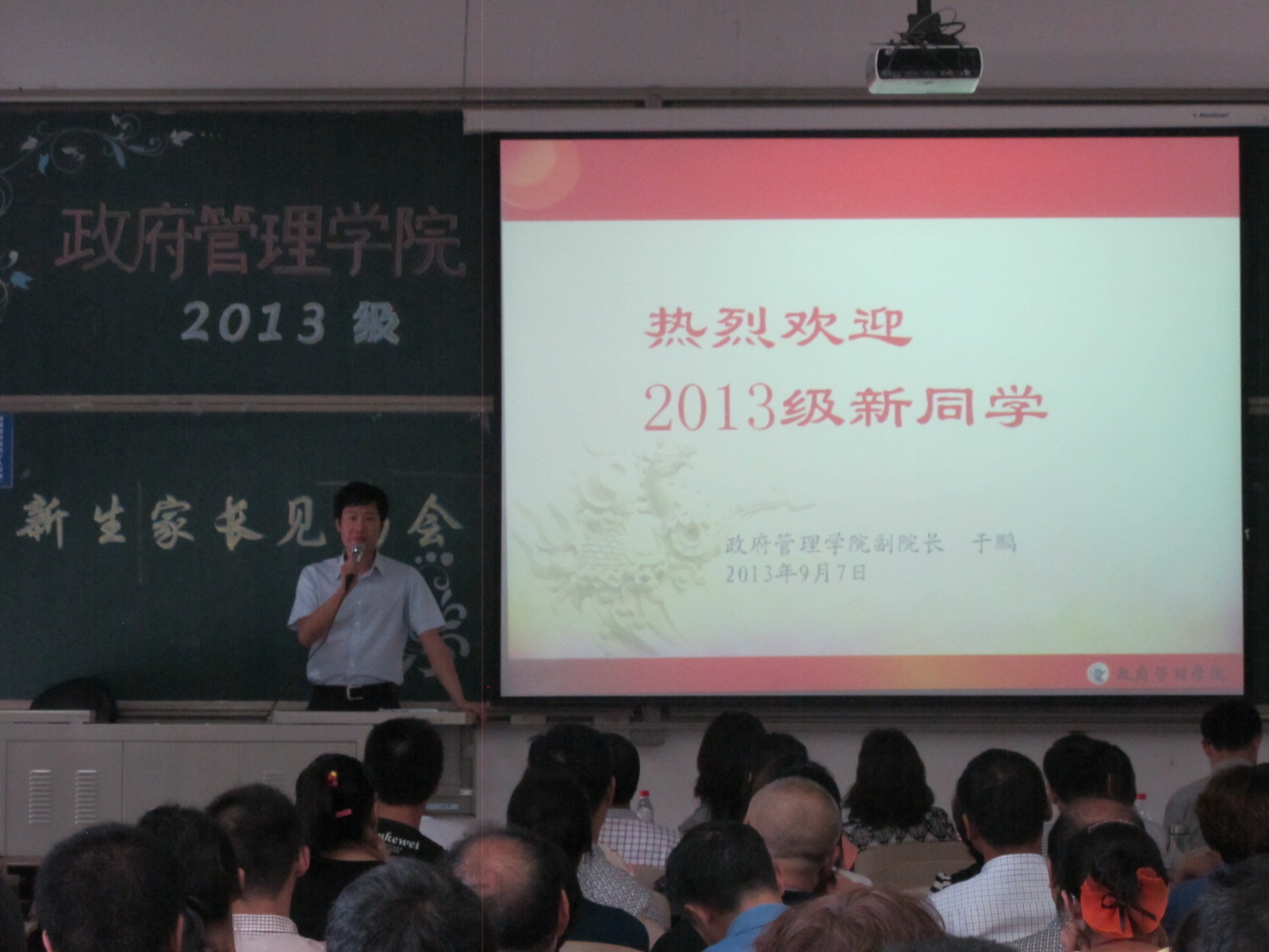 阵阵掌声过后,副院长于鹏上台发表重要讲话。他亲切又细致地介绍了学校和学院工作情况。表示bat365中文官方网站的成立和发展顺应政府改革的历史潮流及经济社会对公共人才的需求,处于蓬勃发展阶段。紧接着,他分别深入介绍bat365的学科发展、师资队伍、国际合作和研究生教育,让大家对学院有了初步认识。在学院本科生培养特色方面,副院长于鹏提出“一个中心、五个基本点、内涵提高、特色强院”的宗旨目标,展开介绍bat365本硕博升学通道、学科优化、教学管理、导师制等多种特色。学院品牌活动和丰富多彩的学生活动也极大地提高了新生及家长的期待值。对于大家关注的就业方向问题,副院长于鹏也一一详细介绍:考研、出国留学、公务员等多重选择让新生对自己的将来有了大致的了解。一个多小时的讲话结束,台下报以热烈掌声,在座各位都对这个可以施展才华、收获真知、积极向上的学院充满希望。