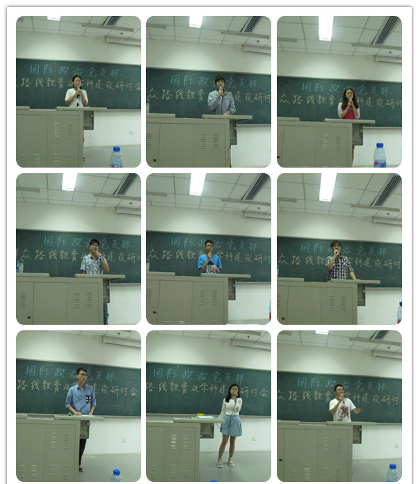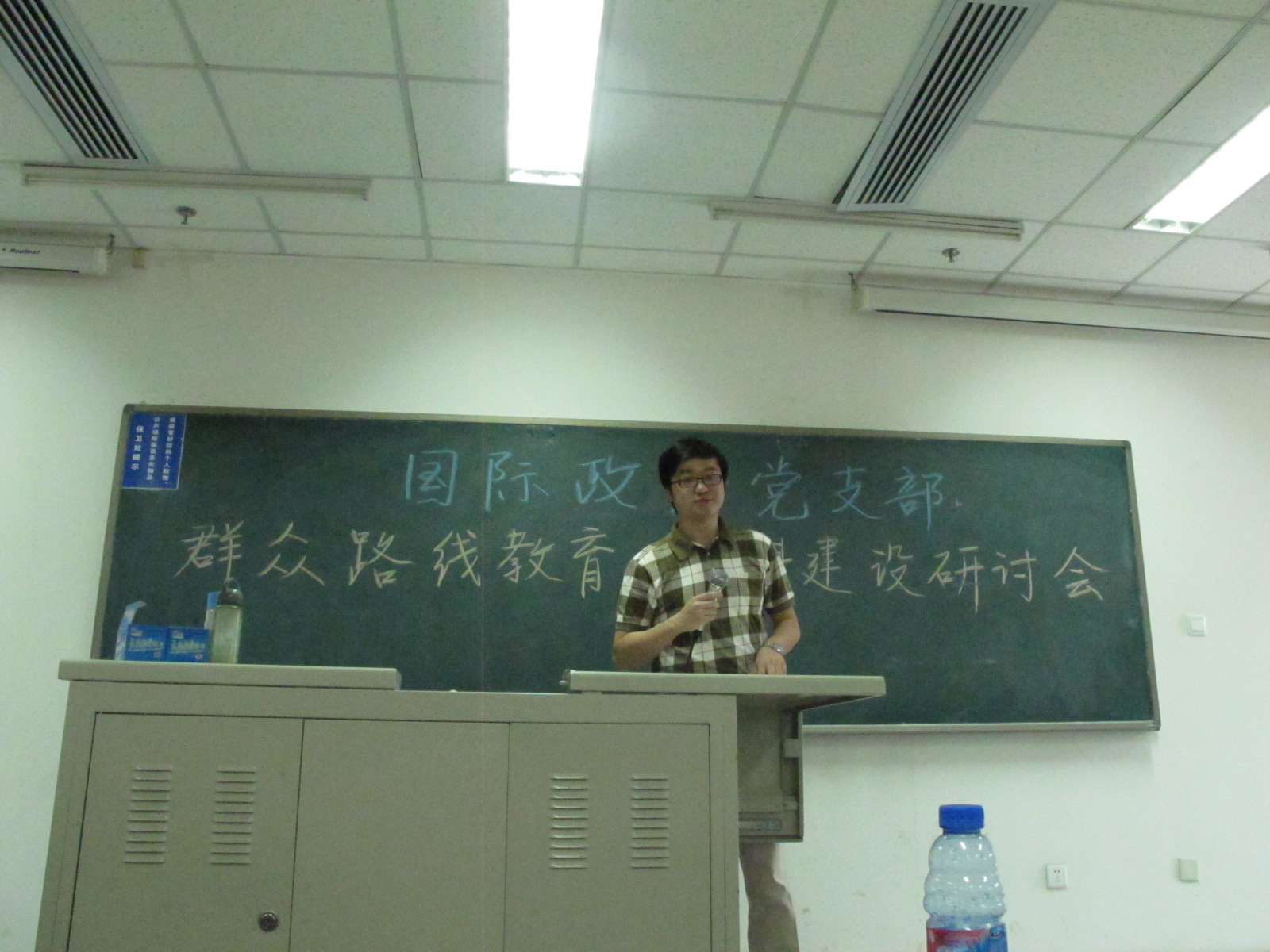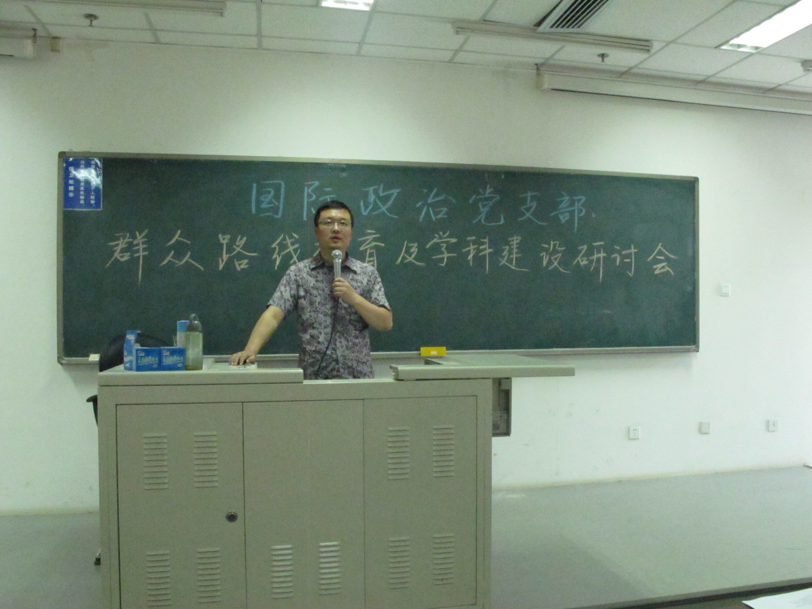 9月11日13点30分,bat365中文官方网站国际政治党支部在沙河校区6号学院楼106教室召开群众路线教育及学科建设研讨会。国际政治专业教师江涛、白云真、张占顺、耿喜梅、辛平、张鹏到场听取11、12级同学关于学院、学科建设方面的看法和建议。