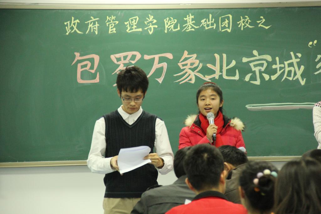 在这一环节中,有的队伍为大家带来了优美动听的改编歌曲,有的队伍表演了搞笑新奇的短剧,有的队伍制作了色香味俱全的美食,为整个活动营造了一个轻松愉悦的氛围。在各组颇具创意,各有特色的展示中,同学们看到了具有北京特色的美味小吃,创意小店,古典建筑和现代化建筑,领略了北京这座古朴与时尚并重的国际大都市风貌,更深深体会了北京精神——“包容”的深刻内涵。