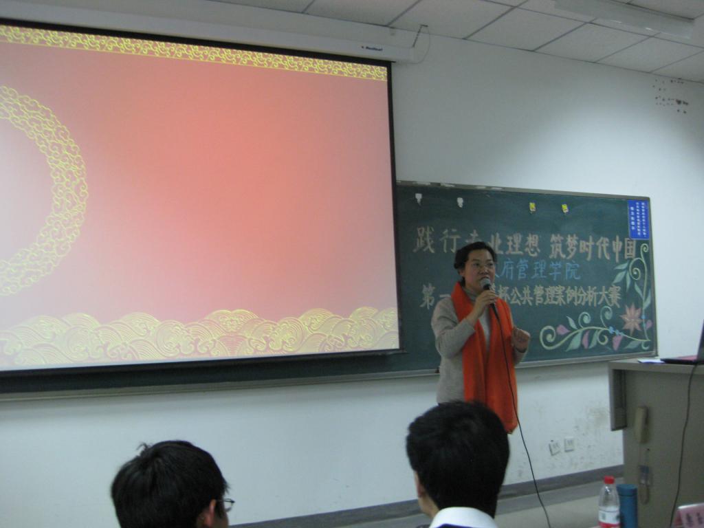 之后,栗玉香老师对此次活动进行点评。她首先对参赛选手们的表现给予极大的肯定。其次,栗老师还提出两点建议:一是希望同学们能够加强对公共管理的理论学习;第二是希望同学们能够享受案例分析的过程,不仅仅为了比赛而比赛,做自己感兴趣的事将永远都不会感到厌倦的。最后,栗老师预祝同学们在今后的道路上取得更大的成功。