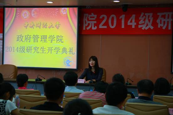 2012级博士研究生段丽娜、2013级行政管理研究生刘潇钺作为老生代表发言。作为学院第一位完成全日制MPA学业之后考取博士的研究生,段丽娜从自身考取博士和在此期间竞聘上北京市财政局副处级领导岗位的经历谈起,号召同学们在未来两年的学习中要登高望远,在学习中不断提升自己的境界;要做到学以精专,学以致用,理论与实践相结合,更重要的是要勿忘初心,这样方得始终。刘潇钺鼓励新同学在政管这个温馨的大家庭中要注重思考,端正态度,培养兴趣,增强能力,共同为自我发展和学院建设而努力。2014级公共管理硕士(MPA)张卓力同学作为新生代表发言,他表示,通过复习考试,重拾书本,他得到了之前难以想象的收获。他号召大家,要珍惜未来宝贵的两年时光,摆正姿态,潜心为学,最大限度地吸取知识和营养,为未来的发展奠定更加牢固的基础。