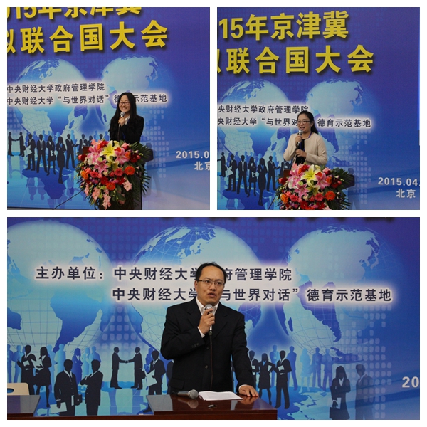 2015年4月17日下午4时整,2015年京津冀模拟联合国大会开幕式在bat365中文官方网站沙河校区4号楼107教室举行。bat365中文官方网站校党委副书记陈明、学生工作部副部长李炎、校团委副书记王艺、bat365中文官方网站院长赵景华、党总支书记吕丽、党总支副书记栗玉香、院长助理任郑莲以及bat365中文官方网站国际政治系全体老师出席开幕式。本次大会共吸引了来自全国10个地区、33所高校、170余名代表参会。红叶国际关系协会前任社长以及来自中国政法大学、中国石油大学、北京航空航天大学等数十所高校的模联会长到场祝贺。