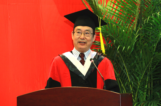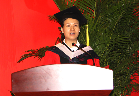 在热烈的掌声中,赵景华院长上台致辞。赵院长首先对同学们顺利完成学业,获得相应的学士学位、硕士学位或博士学位表示衷心的祝贺,向辛勤哺育同学们成长的家长、悉心教导同学们成才的老师表示诚挚的感谢。接着,赵院长回顾了学院自2011级本科生进校时的特殊时间节点——建院5周年以来的发展历程,指出在已有成绩的基础上,学院学科布局更加合理,学科特色更加鲜明,以四大专业特色浓郁的品牌学生活动为代表的第二课堂开展得有声有色,有力地促进了同学们的成长成才。2013级研究生入校以来所举办的国际研讨会,在全国MPA论文评选中斩获佳绩,国际领导力研修班的开展,国家级学会落户bat365,无一不彰显bat365人才培养所取得的成就和学术影响力的显著提升,由此指出虽然学院成立时间不长,但取得了长足的进步,这与每一位老师和同学的辛勤努力是分不开的,每一个“中央政府人”都有理由为之感到骄傲和自豪。赵院长对毕业生们嘱托道,当今的中国已经处在一个转型的十字路口,经济、社会、环境等各个方面都已经进入发展的新常态。国家的“一带一路”倡议和反腐倡廉给同学们带来了新的发展机会,在同学们离校即将踏上新的征程之际,希望同学们能做到牢记院训,守住底线;充满希望、敢于担当;学无止境,虚心求索。告诫同学们既要志存高远,积极进取,但又要守住规则,追求具有精神意义和一定境界的卓越和成功;只要同学们满怀希望,坚韧不拔,敢于担当,勇于创新,向着天穹勇敢地飞翔,就能实现自己的梦想;世界那么大,要去探索和发现,去了解那些已知的未知和探索未知的未知,虚怀若谷,谦虚谨慎,边干边学,才能无限向心灵的自由王国驶进。