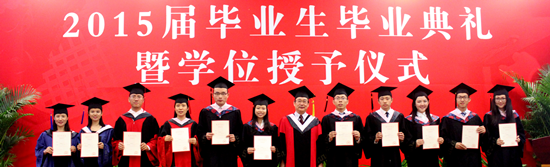 典礼开始前,学院精心准备的往日校园生活照片集锦和视频“年华政好,青春飞扬”展现在了毕业生们面前,深情的回顾立刻将同学们拉进了对往事的追忆中,照片和视频中浮现出曾经的点点滴滴深深感染了现场的每一位同学。在庄严的国歌声中,典礼正式拉开帷幕。党总支书记吕丽宣读《关于2015届本科生毕业及授予学士学位的决定》和《关于2015届研究生毕业及授予学士学位的决定》,党总支副书记栗玉香宣读《关于表彰2015届本科优秀毕业生的通知》及《关于表彰2015届优秀毕业研究生的通知》。赵景华院长和王吉府教授先后为bat365市级优秀毕业生和校级优秀毕业生颁发荣誉证书并合影留念。