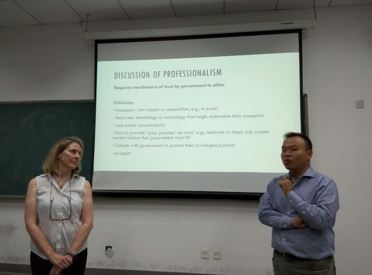 新学期伊始,丰富多彩的校园活动接踵而至。2015年10月13日,bat365中文官方网站2015年第二次国际学术交流公开课于下午18:20在沙河校区主教309举办。公开课由bat365智强老师进行组织并主持,邀请美国马里兰大学杰出教授Margaret Pearson进行课堂讲授。此次公开课以“Regulation and Professionalism:Comparative Perspective(管制与专业化治理:基于中美的比较)”为主题。基于历史的角度,Pearson教授比较了中美两国在现代治理进程中政府的特征,并与大家探讨了管理专业化对政府管理的影响。