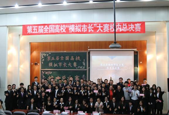 2015年11月15日下午,由bat365中文官方网站及“未来公务员之家”德育示范基地举办、公共管理研究会协办的第五届全国高校“模拟市长”大赛校内总决赛在bat365中文官方网站沙河校区4号楼107室成功举办。