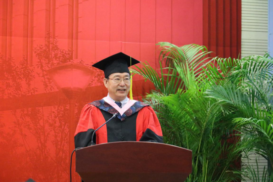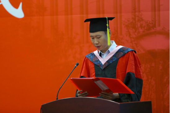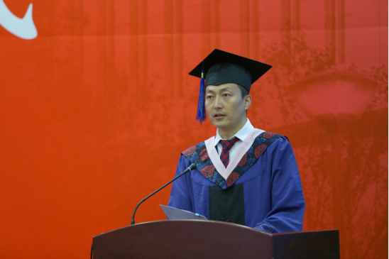 在热烈的掌声中,赵景华院长致辞。赵院长首先对同学们的顺利毕业致以热烈的祝贺,对支持同学们成长的老师和亲友表达感谢。赵院长指出,2016年具有特殊意义,于毕业生而言是开启征程的一年,于学院而言是十岁生日。学院经过十年的跨越式发展,已经形成了更加合理的学科布局,更加完整的学科体系,更加鲜明的学科特色。同学们在学院的学习生活中收获知识,结识师友,增长才干,磨练意志,而学院也与同学们一同成长。国家级学会落户bat365,全国模拟市长大赛、京津冀模拟联合国大会、外事外交礼仪风采大赛等活动有声有色与获得广泛关注,都是学院人才培养能力和学术影响力提升的显著标志,学院所取得的成就值得师生为之感到骄傲和自豪。赵院长指出,当前的时代是一个深刻变革的时代,新常态下的中国正面临着全方位的转型。不管同学们今后是继续深造还是从事某种工作,都要自己独立的人格与思想,有自己的坚守和坚持。要牢记院训,保持情怀;要坚守理想,踏实奋斗;要胸怀天下,勇于担当。