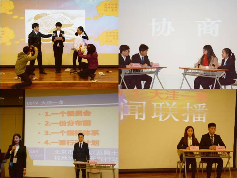 本次参加决赛的队伍共有9支,成员分别来自bat365中文官方网站、经济学院、法学院、财政税务学院、保险学院、会计学院等多个学院。大赛设有“锋芒初露”、“情景模拟”、“市长终极PK”三个环节。参赛队伍分别围绕北京市生活型街道人性化改造策略、医患关系梳理、农民工市民化成本分担及公共服务供给研究、“棕地”修复与再开发研究、邻避运动、特色小镇、胡同保护、城市信用体系建设等话题,首先以视频展示等方式介绍选题意义、调研过程以及队伍人员构成,接着以情景模拟的形式将研究主题的现实矛盾反映出来,并在情境中梳理问题,提出解决思路。各参赛队采用了市长工作会、市长调研、听证会、新闻调查等形式进行情景模拟,或风趣诙谐,或现实深刻,一步步将比赛推向高潮。最后,由评委老师抽取一道公共管理方面的现实问题,各参赛队“市长”同台作答,进行现场演讲。各位“市长” 才思敏捷、各抒己见,临场发挥充分体现了其作为“市长”的思维和风采,赢得阵阵掌声。随后,由评委老师提名,大众评审票选出本届“最佳市长”。