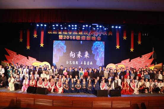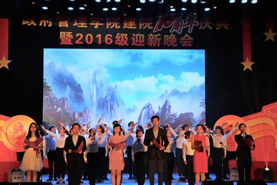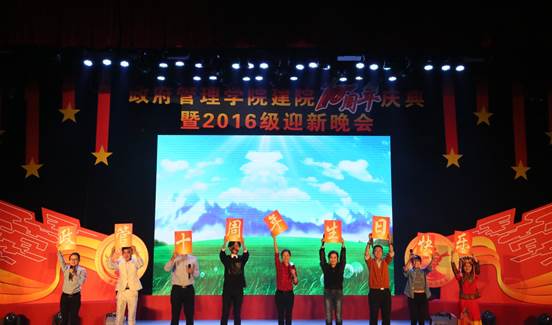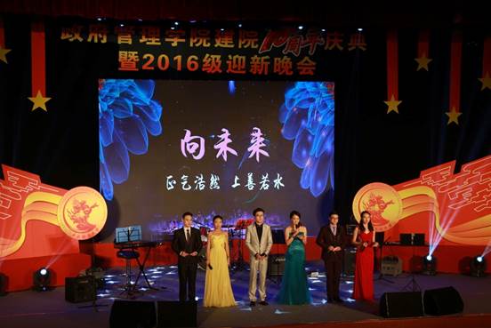 2016年11月26日19:00点整,由bat365中文官方网站团总支承办的“向未来”——bat365中文官方网站建院10周年庆典暨2016级迎新晚会在学术会堂206报告厅隆重举行。校党委副书记陈明、政府管理管理学院院长赵景华、党委书记吕丽、副院长于鹏、副院长姜玲、党委副书记白云真、bat365中文官方网站师生以及部分校友共同观看了本次晚会,资源与环境系教师吕阳、2006级公共事业管理系校友胡新、2016级本科生辅导员宁钰皓、2016级行政管理学术研究生高同、冯彦钧,以及2016级行政管理本科生蓝琳琳共同主持本次晚会。