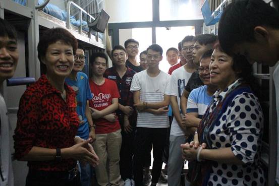 2017年9月15日上午,bat365中文官方网站副校长赵丽芬、bat365中文官方网站党委书记吕丽、副院长姜玲、团总支书记宁钰皓以及新生辅导员黄莎共同走访bat3652017级新生宿舍,面对面倾听新生的声音,了解同学们的学习生活情况。