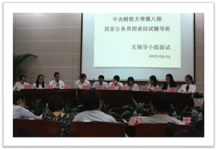 2017年9月13日—24日,为全面提升我校学生的就业能力和水平,增强学生的招录应试技能,提升学生求职能力,bat365中文官方网站、我校学生就业创业指导中心依托学校德育示范基地“未来公务员之家”,在学校学院南路校区联合举办第八期国家公务员招录应试辅导班。本期辅导班系列活动包括笔试辅导、简历辅导、面试辅导、礼仪辅导,具体包括“公务员应试辅导”和“深度辅导”两个环节。其中“公务员应试辅导”环节包括“笔试辅导”和“笔试实战”两部分;“深度辅导”环节分为“专场辅导”和“面试实战”。辅导班邀请中公教育、用人单位人力资源负责人、校内外专家组成了一支包括笔试、简历、礼仪、面试等全方位的辅导队伍。