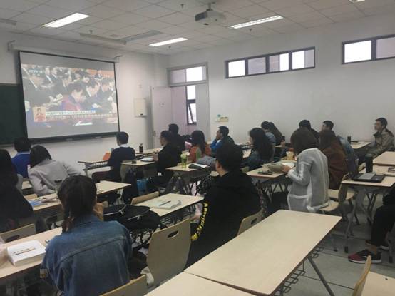 习近平总书记代表十八届中央委员会向大会作报告,他鲜明指出当前的中国“前景光明、挑战严峻”,我们仍需“登高望远、居安思危”。习近平总书记从党和国家全局事业出发,对管党治党、国防与军队建设、法制建设、民生建设等方面进行了全面总结、科学部署,提出协调推进“四个全面”,实现“五位一体”总体布局,决胜全面建成小康社会,夺取中国特色社会主义伟大胜利。观看过程中,全体师生聚精会神、心无旁骛,在收听收看报告的同时认真做好记录,习近平总书记精彩连连的论断和重磅概念也激发了师生多次热烈的掌声。