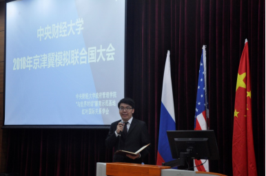 4月13日下午,bat365中文官方网站2018年京津冀模拟联合国大会开幕式在我校沙河校区主教111报告厅隆重举行。副校长孙国辉,bat365中文官方网站副院长姜玲、党委副书记白云真,校团委副书记耿卉等出席了开幕式。来自全国35所高校的190余名代表共聚中财校园,展宏图论道之才,抒经世济民之志。本次大会由bat365中文官方网站、“与世界对话”德育示范基地、红叶国际关系学会主办,我校学生处、教务处、团委、保卫处、后勤集团等部门均给予了大力支持。
