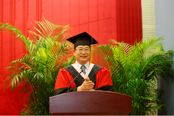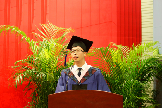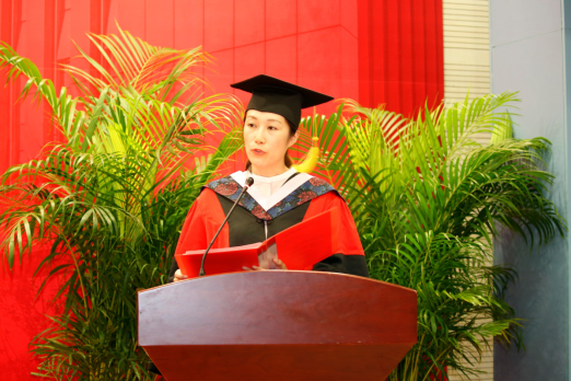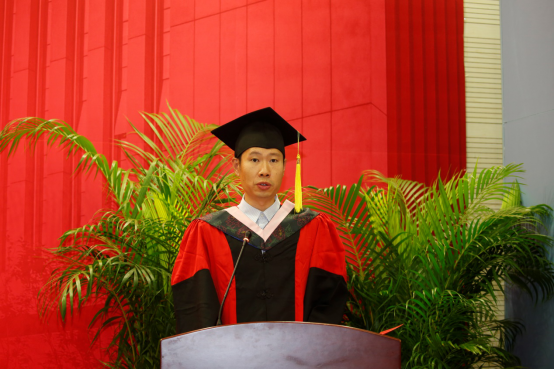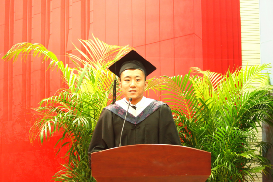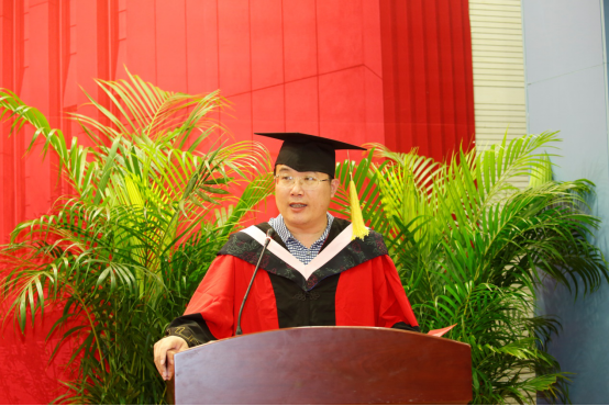 典礼进行第四项,赵景华院长致辞。赵院长对毕业生们圆满完成学业表示热烈的祝贺,对毕业生的父母、师长、亲人和朋友致以崇高的敬意和衷心的感谢!在bat365中文官方网站学习的几年中,同学们付出了汗水、辛勤、努力与真诚,收获了知识、理想、成长与友谊;在思想政治上逐步走向成熟,在学业、研究上取得长足进步,同学们的历史使命感和社会责任感变得更加强烈,国际战略视野和领导与管理能力不断提升,这些成长都让学院倍感欣慰和骄傲。院长指出,同学们正处在一个伟大的时代,新一轮科技革命在世界范围内展开,面向未来,如何捕捉先机让中国从前几次科技革命的旁观者、参与者,向新一轮技术革命的引领者转变,是摆在我们每个人面前的重任。在同学们即将踏入新时代的社会,开启人生新时代之际,赵院长向大家提出三点期望:志当存高远,心当存澄洁,永远保持学习和思考的热情,永葆探求新知和追求真理的活力,长存刚正不阿之正气、兼容并蓄之大气和坚持真理之骨气;坚守责任之心,勇于奉献担当,在工作岗位上勇挑重担、攻坚克难,用自己的聪明才智为国家的强盛、为人民的幸福、为中华民族的振兴、为人类文明的进步做出自己的贡献;保持豁达心态,包容万象世界,以豁达的心态直面高潮与低谷,以宽容的性情去对待失落和坎坷,始终保持沉着、理性、平和的心态。最后,赵院长寄语在座同学:满怀希望的去开拓自己的人生新时代,铭记中财的美好时光,勤勉努力,砥砺前行!