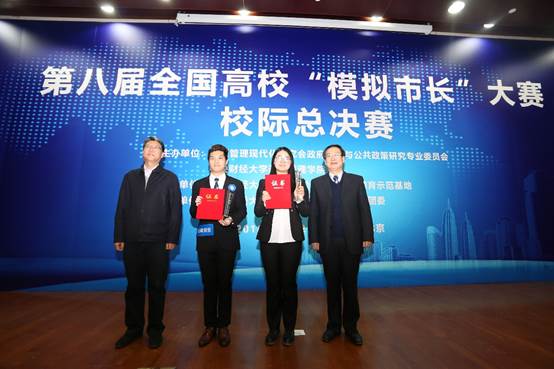 决赛共分为“团队情景展示”“市长终极PK”两个环节。参加比赛的各支队伍独具匠心,分别展示了他们在天津市残疾人体育健身锻炼现状调查与政策制定、青岛市生活垃圾分类激励机制、武汉市汉口非文保建筑保护与再利用、北京市“三城一区”建设优化研究、基于村民视角分析农村社会治安公共产品的供需差距、成都市政府数据开发的国内进展与顶层设计研究、张家口旅游扶贫模式研究、跨代共融,隔代传承、旧楼加梯问题与对策、新旧动能转换过程中去产能企业职工分流安置问题研究和“文旅融合”背景下信阳市乡村旅游产业升级路径方面的研究成果。在“团队情景展示”环节中,各支队伍通过视频介绍团队基本情况、研究主题、研究过程和研究结论,以情景表演的方式,对所研究的问题进行深入的探讨与展示,并接受评委老师的提问。“市长终极PK”环节,评委向选手们现场提问,进行互动交流。