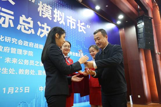 林彦芹评委首先祝贺本场比赛的圆满成功,为同学们的表现点赞。她表示“模拟市长”大赛为同学们搭建了一个了解社会、认识社会、关心社会、服务社会的平台,同时告诉大家,“市长”不是职业而是一种社会角色,鼓励同学们以自己的责任和担当推动社会发展。