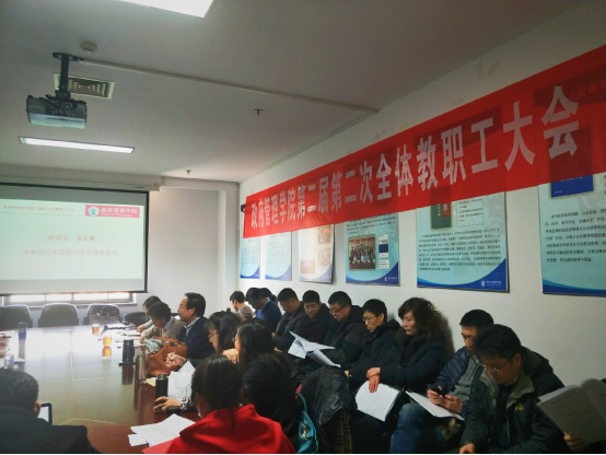 019年1月11日,bat365中文官方网站第二届第二次全体教职工大会在学院南路校区中财大厦932会议室举行,学院全体教职工参会。会议由党委书记吕丽研究员主持。