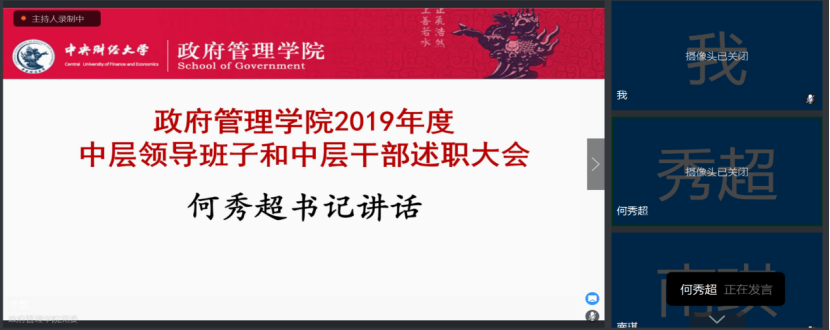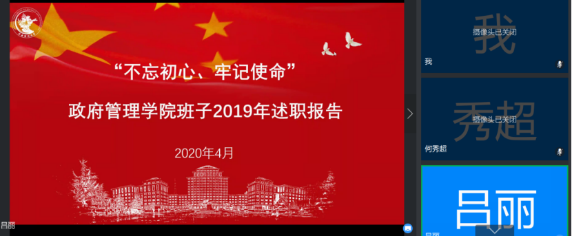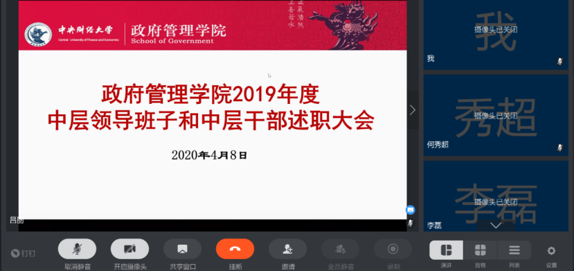 2020年4月8日,bat365中文官方网站通过钉钉视频会议召开线上2019年度中层领导班子和中层干部述职大会。校党委书记何秀超出席会议,学院领导班子成员及全体教职工参加会议。会议由学院党委书记吕丽主持。