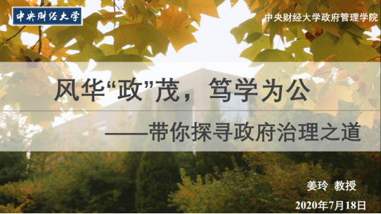 姜玲院长致辞并作专题讲座,她首先对营员们的“云”参营表示热烈欢迎。她从bat365中文官方网站的初心与使命、研究生的培养特色与优势、学校校园文化生活和毕业生就业深造渠道等方面展开讲解,重点强调公共管理的初心和使命、公共价值的引领与学生战略思维和领导能力的培育。最后,姜玲院长对营员们提出希望并表达祝福,希望他们在接下来的考核中,能够充分发挥、展现风采。