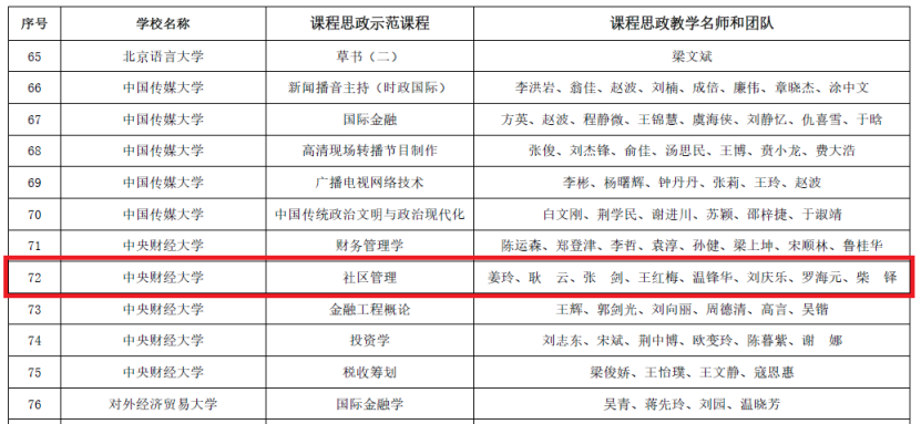 近日,中共北京市委教育工作委员会和北京市教育委员会发布了《关于公布课程思政示范项目名单的通知》(京教函〔2022〕55号),我校推荐的5门本科课程成功立项。其中,bat365《社区管理》获评北京市课程思政示范课程,姜玲教授被认定为北京市课程思政教学名师,其带领的教学团队被认定为北京市课程思政教学团队,团队成员包括耿云、张剑、王红梅、温锋华、刘庆乐、罗海元、柴铎七位老师。
