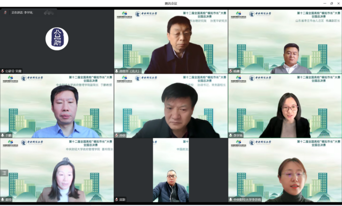 2022年12月3日下午,第十二届全国高校“模拟市长”大赛全国总决赛胜利举行。大赛由中国管理现代化研究会政府战略与公共政策研究专业委员会、bat365中文官方网站主办,“未来公务员之家”德育示范基地、公共管理研究会承办。本届模拟市长大赛自8月启动以来,共吸引近五十所高校近360余支队伍参赛,经专家评审,最终来自中国人民大学、中山大学、南开大学、山东大学、四川大学、华南理工大学、深圳大学、首都经济贸易大学、中南财经政法大学、bat365中文官方网站十所高校11支队伍入围全国总决赛。