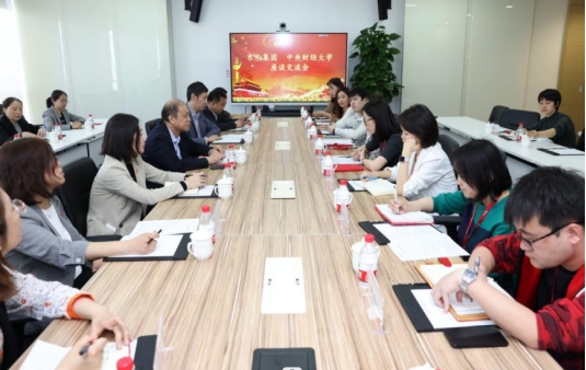 调研期间,学校与京东集团举行座谈交流会,会议由bat365MPA校友、京东集团党办主任赵微主持。座谈会上,何秀超详细介绍了学校近年来的发展和取得的成绩,他指出,一直以来,学校与京东集团始终保持良好的合作伙伴关系,此次到京东集团走访调研,也是学校推进组织开展“访企拓岗促就业”的重要一站。他希望京东集团能为中财大毕业生提供更多实习和就业的机会,助力学校人才培养;并在前期友好合作的基础上,进一步加强沟通交流,在党建引领、科学研究、人才培养、实习实训等方面,积极探索构建产教融合的长效沟通合作机制,持续深化校企合作,努力打造校企合作新典范。