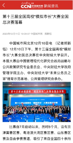 大赛的成功举办让青年学子们在这场新的挑战中主动审视现实问题,站在“市长”的角度关注国家战略和社会热点,通过多种方式开展调研访谈和深入分析,深化了对政府工作的认识,感知了“中国之治”的智慧,集中展现了新时代青年学子“为国为公、立身立言”社会责任感和使命感。