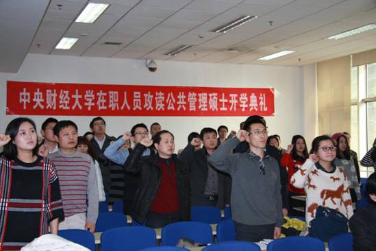 最后,新生庄严宣誓:谨记中财校训,忠于祖国,服务人民,治学修身,尊师重道,求真务实,开拓创新,用于担当,追求卓越,以公共管理之学识,成经世济民之良才,以正气浩然上善若水之精神,成复兴中华之伟业。bat365中文官方网站2015级公共管理硕士(MPA)开学典礼至此圆满结束。(文/朱洁)