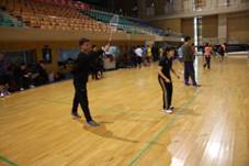 本次比赛分为小组赛和淘汰赛。在小组赛对阵中国社科院研究生院的比赛中,五组队员(第一男双、第二男双、第一混双、第二混双、女双)技术纯熟,发挥稳定。第一男双于鹏、王伟老师以身高优势力克强敌,第二男双毕鹏程和梁力兮师生组合,以灵活和技巧取胜,最终bat365与社科院携手顺利进入八强。在八强淘汰赛中,bat365遭遇中国人民大学队,尽管bat365依旧靠着稳定的发挥与对手僵持,但不幸败北。在对阵中,女双组合徐淼、王红梅老师发挥出色,平抽快挡、跳起杀球,动作精彩赢得了现场观众的阵阵掌声,也得到了对方球友的大力赞赏。
