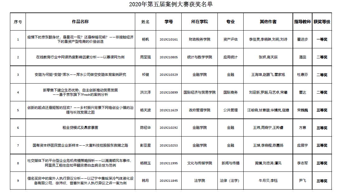 2020年6月23日,第五届bat365中文官方网站专业学位研究生案例大赛决赛在线举办,来自bat365中文官方网站、财政税务学院、金融学院、国际经济与贸易学院、统计与数学学院、法学院的9支队伍进入决赛。由宋魏巍副教授指导,2019级全日制MPA杨天波、汪喻晓、甘意璇、华婧岚、寇婕五位同学撰写的案例成功晋级决赛并荣获三等奖。