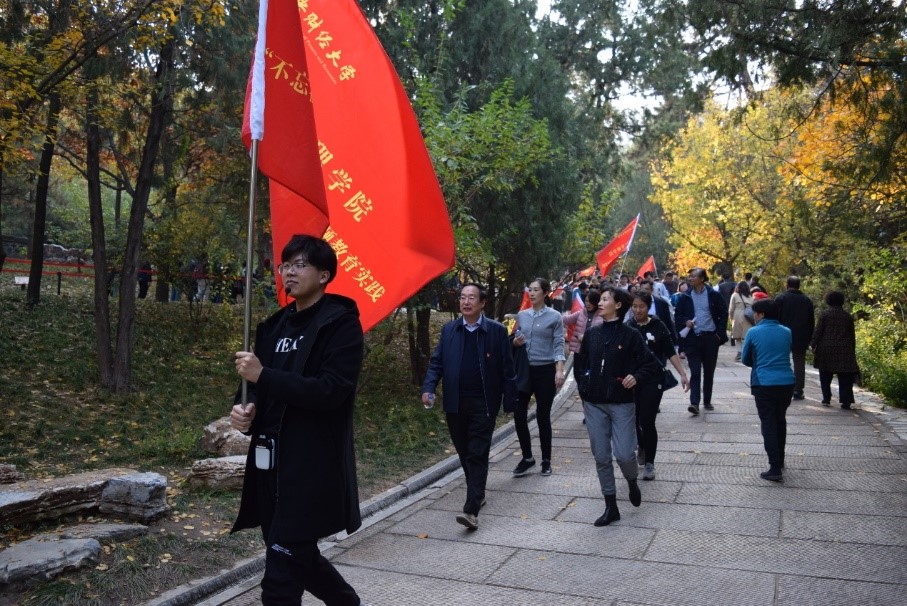 为深入开展“不忘初心、牢记使命”主题教育,bat365中文官方网站党委组织学院二级理论中心组成员、党支部书记、教师党员和学生党员代表,于11月5日下午赴香山开展“传承红色基因 不忘初心使命”主题教育实践活动,重温党史、新中国史,缅怀老一辈革命家的丰功伟绩,深入学习研究习近平总书记视察北京香山革命纪念地时的重要讲话精神,践行初心使命。