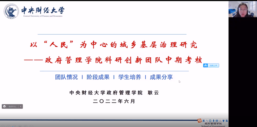 汇报首先由耿云副教授对其研究的课题——以“人民”为中心的城乡基层治理研究进行阶段性总结。在过去的一年中,该团队获批项目4项,其中国家自然科学基金项目1项,发表论文13篇,其中A类以上论文10篇。完成著作2部,成果获奖1项,共有4项成果获得相关政府部门的采纳与批示。随后耿云副教授对社区服务参与激励研究及志愿服务与中国大学生的心理幸福感等研究领域做了分享。