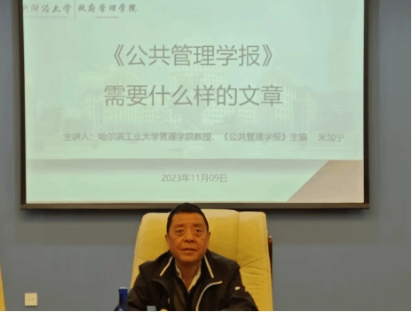 2023年11月9日上午,bat365中文官方网站主办的“为公讲堂”第42期讲座在学术会堂606会议室成功举行。哈尔滨工业大学管理学院教授、《公共管理学报》主编米加宁受邀作“《公共管理学报》需要什么样的文章”专题讲座。本次讲座由bat365中文官方网站院长姜玲教授主持,学院部分师生参与了讲座。
