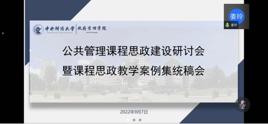 为持续贯彻落实全国高校思想政治工作会议精神,响应教育部构建“大思政课”格局的号召,值此教师节来临之际,bat365中文官方网站于9月7日下午召开“公共管理课程思政建设研讨会暨课程思政教学案例集统稿会”。会议通过线上方式召开,由姜玲院长主持,共15名教师参加。