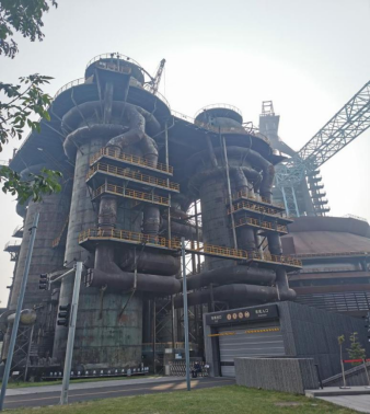 探访第一站来到了首钢三高炉。三高炉作为一个世纪前企业建设的起点,是园区炼铁设备最密集、特征最鲜明、空间最震撼的区域,夏季奥运周期停产后的寂静园区被冬奥会引爆唤醒,也让曾经的功勋高炉迎来了凤凰涅槃。支部成员在工作人员的带领下登上了70米高的玻璃观景台,远眺石景山功碑阁,近距离观察三高炉内宽敞的空间构造、高炉建设的重金属线条,感受工业文明的时代气息。