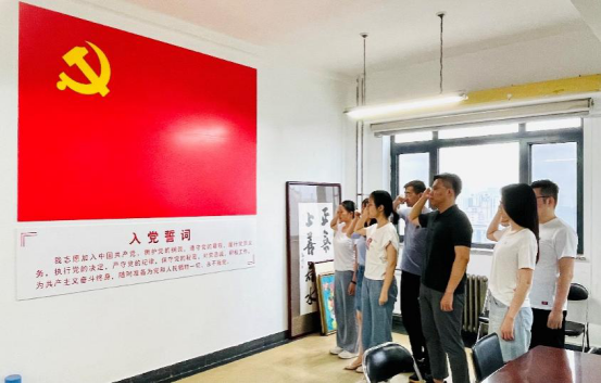 活动伊始,支部组织大家共同学习了习近平在党史学习教育动员大会上的重要讲话精神,随后组织展开党员宣誓活动。